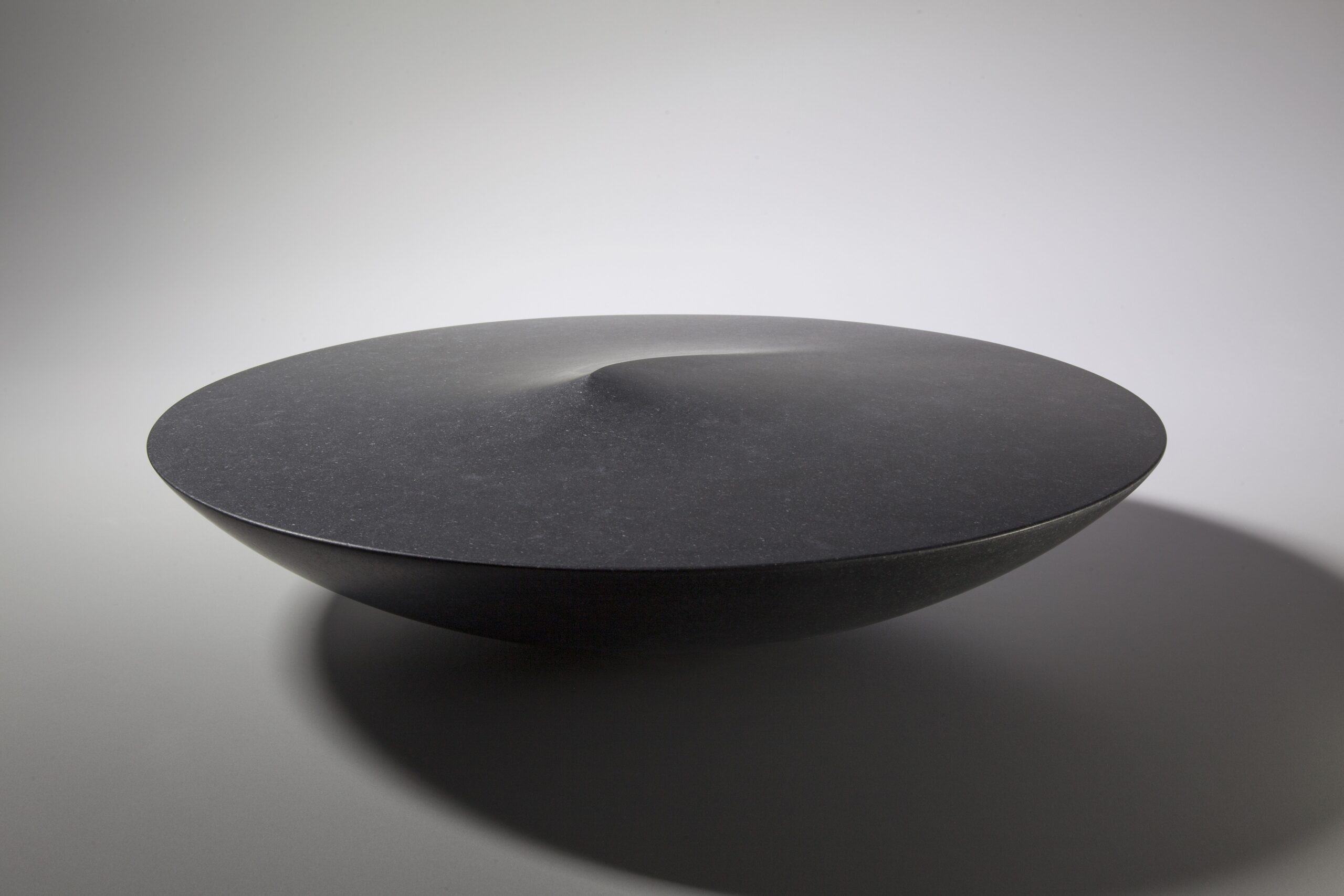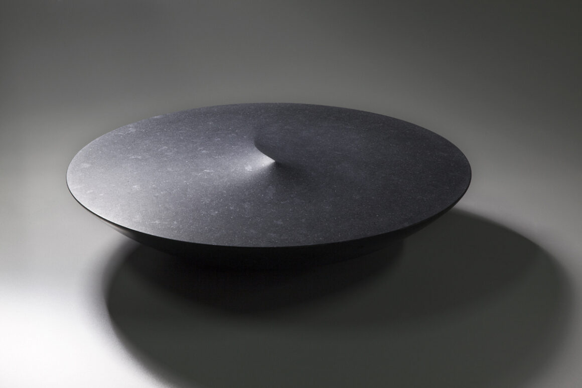 From the vast black granite surface a line emerges ending in a point that captures light. His granite pieces transform under shifting light. Morning sun on a curve creates a sharp line, a defined edge. By afternoon, it’s soft, diffuse. The stone isn’t changing. The light dancing on it is. The sculpture holds the potential for infinite moments. The stored energy in the dense compact granite communicates optimism to the outside world.